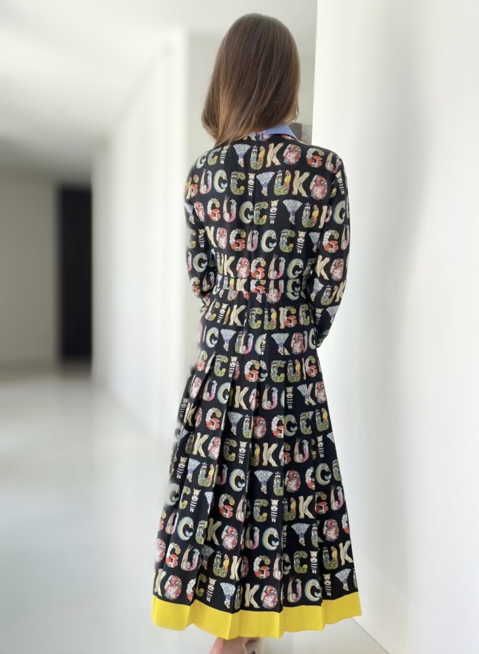この日のワンピースがこちら。柄ものながら品が良くてお似合いで。